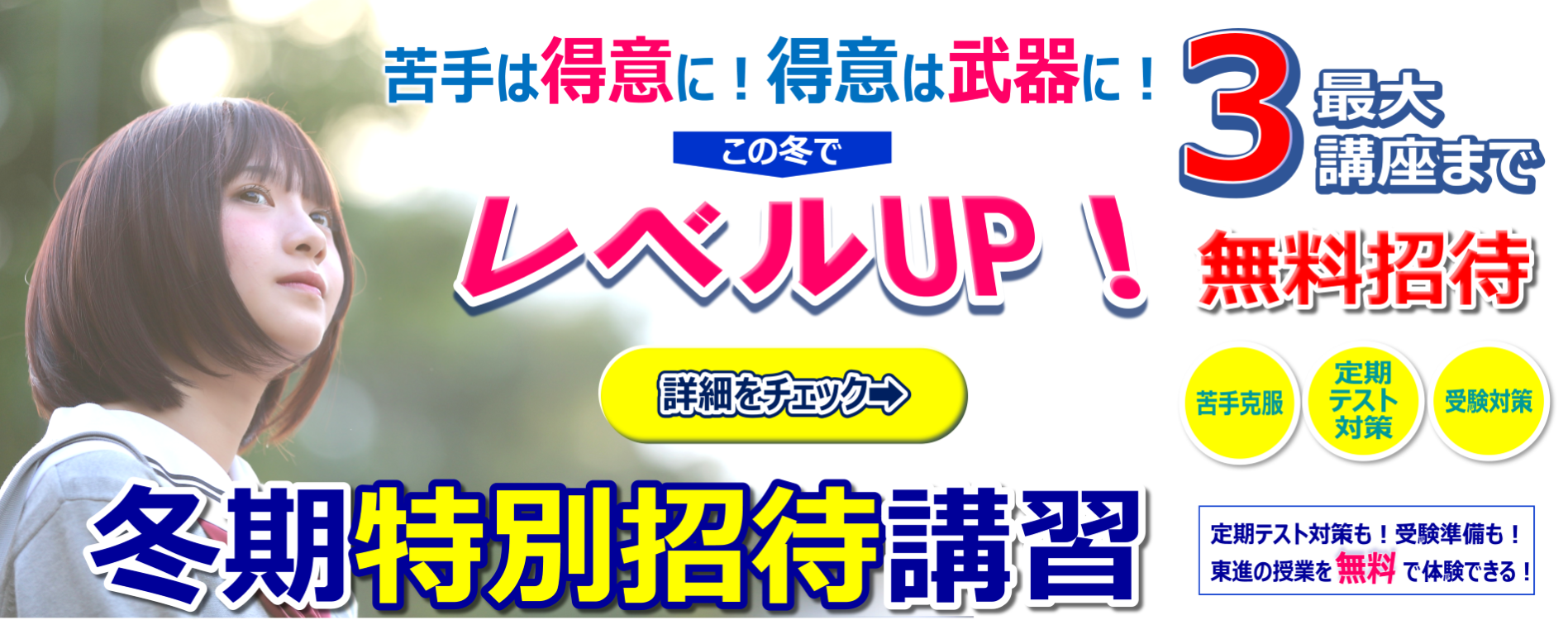 -100万人の生徒に100万通りの志望校対策をーそんな思いからAIを使った志望校対策は生まれました。東進のビッグデータから、AIが大学毎の出題傾向やキミの学習履歴をもとに最適な講座を提案!生徒一人一人に寄り添った「完全個別対応の志望校対策」こそが圧倒的合格率の秘訣です!